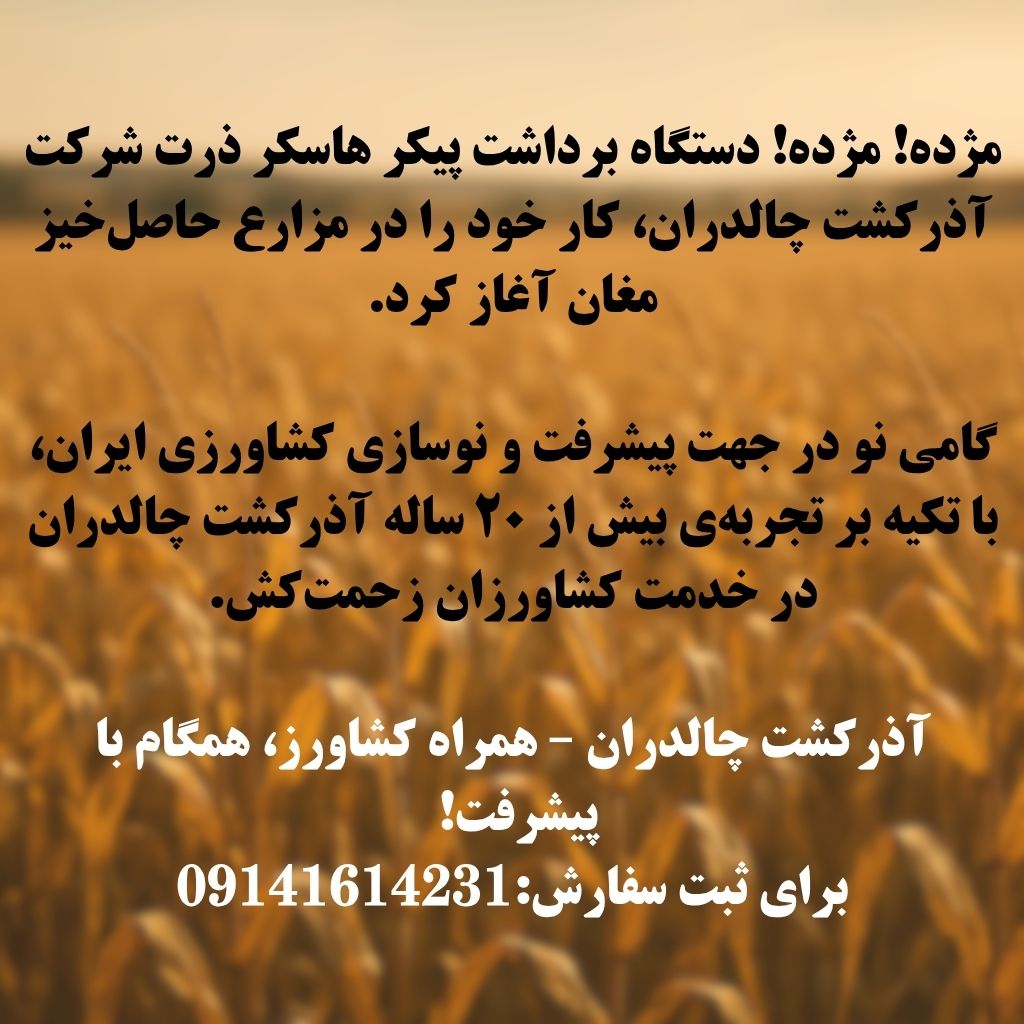 سفر ما با چشماندازی برای توانمندسازی کشاورزان در سراسر ایران و منطقه شمالغرب آغاز شد. ما ابزارهای لازم برای افزایش کارایی، بهرهوری و پایداری را در اختیار کشاورزان قرار دادیم تا صنعت کشاورزی ایران عزیزمان پرقدرت تر و بروزتر از همیشه به پیشرفت خود ادامه دهد. آذرکشت چالدران با تکیه بر توان مهندسان داخلی و تکنولوژی پیشرفته جهانی دائما نقش مهمی در ارتقای جایگاه کشاورزی کشور عزیزمان داشته است؛ و همیشه به ارزشهای اصلی خود یعنی کیفیت، بروز و بادوام بودن ادوات خود همراه با خدمات پس از فروش طولانی مدت پایبند بوده است.
